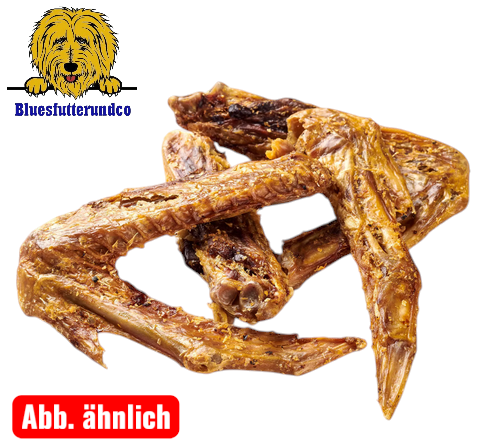 Unsere getrockneten Enten-Flügel sind ein naturbelassener Kausnack aus schlachtfrischen Rohprodukten – ganz ohne Zusätze. Die harte Konsistenz sorgt für mittel-langen Kauspaß und unterstützt gleichzeitig die Zahnreinigung deines Hundes.